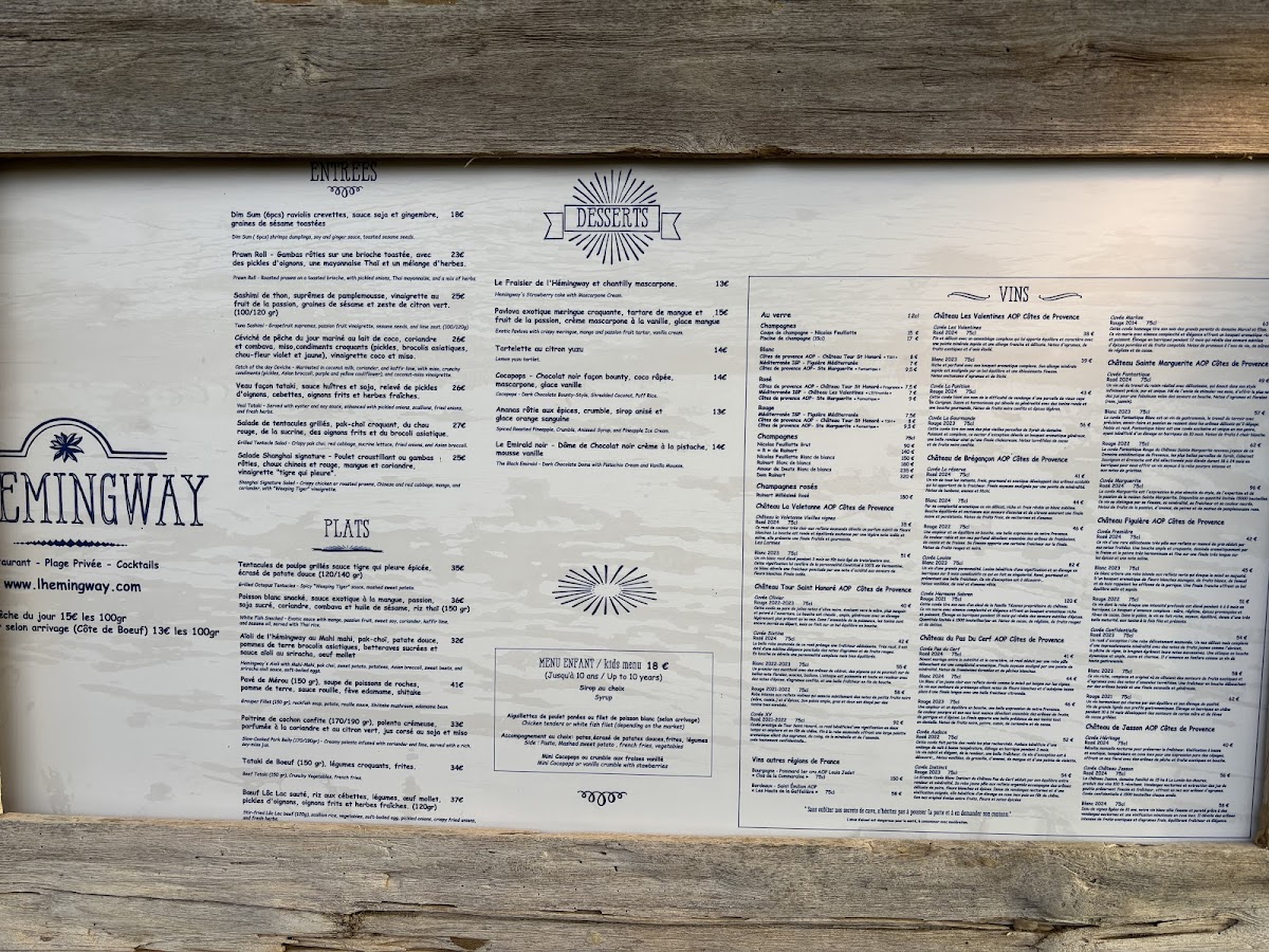 Welcome to Restaurant L'Hemingway, a charming French eatery nestled along the picturesque Plage de l'Argentiere in La Londe-les-Maures. Renowned for its stunning beachfront views, this restaurant offers an exceptional dining experience where you can savor delightful dishes with your toes in the sand. The menu features a tantalizing array of dishes, from fresh seafood to exquisite tapas, perfectly complemented by an impressive selection of special cocktails.